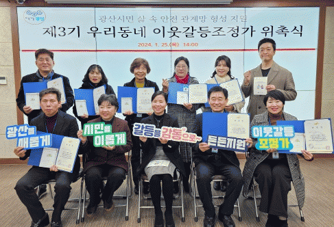 [¹Ìµð¾îÀü³² ±èÁ¤¿ì ±âÀÚ]´ëÈ¿Í ¼ÒÅëÀ» ÅëÇØ »ýȰ ¼Ó ´Ù¾çÇÑ ÀÌ¿ô°úÀÇ °¥µî ÇØ°áÀ» µ½´Â ±¤»ê±¸ ¡®¿ì¸®µ¿³× ÀÌ¿ô°¥µîÁ¶Á¤°¡¡¯°¡ ¿ÃÇØµµ Ȱ¾àÀ» ¿¹°íÇß´Ù. ±¤ÁÖ ±¤»ê±¸´Â 25ÀÏ ±¸Ã» 4Ãþ ¼ÒȸÀǽǿ¡¼ Á¦3±â ¿ì¸®µ¿³× ÀÌ¿ô°¥µîÁ¶Á¤°¡ À§ÃË¡¦