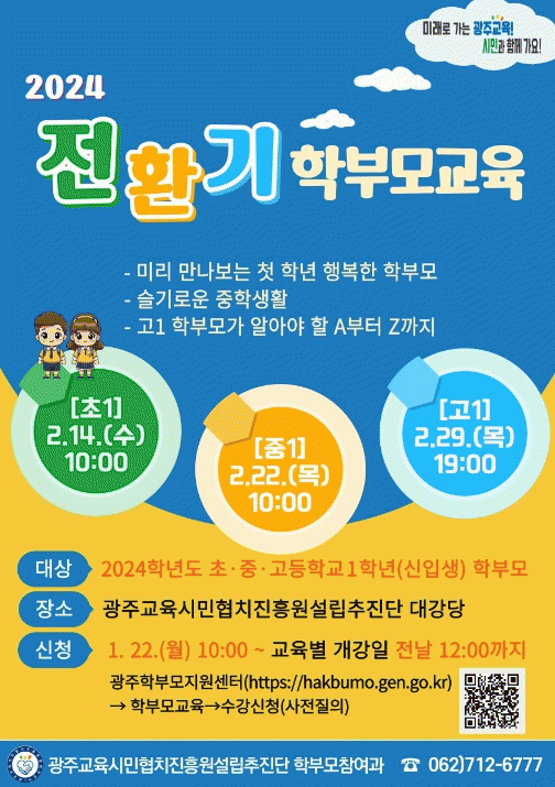 [¹Ìµð¾îÀü³² Á¦°¥´ëÁ¾ ±âÀÚ]±¤ÁÖ±¤¿ª½Ã±³À°Ã» ±¤ÁÖ±³À°½Ã¹ÎÇùÄ¡ÁøÈï¿ø¼³¸³ÃßÁø´ÜÀÌ 2¿ù 14~29ÀÏ ´ë°´ç¿¡¼ ÃÑ 3ȸ¿¡ °ÉÃÄ ¿ÃÇØ ÃÊ¡¤Áß¡¤°í ½ÅÀÔ»ý Àڳฦ µÐ Çкθ𸦠´ë»óÀ¸·Î ¡®2024³â Àüȯ±â Çкθð±³À°¡¯À» ½Ç½ÃÇÑ´Ù. 29ÀÏ ½Ã¹ÎÇù¡¦