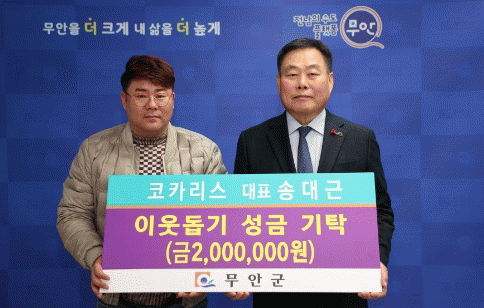 [¹Ìµð¾îÀü³² ±èÆÇ±¹ ±âÀÚ]Àü³² ¹«¾È±ºÀº Äڶ󸮽º(´ëÇ¥ ¼Û´ë±Ù)°¡ Áö³ 16ÀÏ ¾î·Á¿î ÀÌ¿ôÀ» À§ÇÑ »çȸº¹Áö»ç¾÷¿¡ ½á´Þ¶ó¸ç ¹«¾È±º¿¡ 200¸¸ ¿øÀ» ±âŹÇß´Ù°í ¹àÇû´Ù. ÄÚÄ«¸®½º´Â ÈÀåǰ Àü¹®¾÷ü·Î °í°´µéÀÇ Àþ°í Ȱ·Â ³ÑÄ¡´Â ÇǺθ¦ À§¡¦