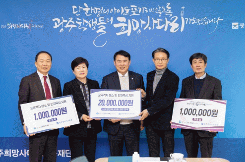 [¹Ìµð¾îÀü³² Á¦°¥´ëÁ¾ ±âÀÚ]±¤ÁÖÈñ¸Á»ç´Ù¸®±³À°Àç´ÜÀÌ 17ÀÏ À¯Å¾¿£Áö´Ï¾î¸µ ÃÖ¼® ȸÀå µî Áö¿ªÀλçµé·ÎºÎÅÍ 2,200¸¸¿øÀÇ ±âºÎ±ÝÀ» Àü´Þ¹Þ¾Ò´Ù. °°Àº ³¯ ½Ã±³À°Ã»ÀÌ µû¸£¸é À̹ø ±âºÎ±Ý Àü´Þ½Ä¿¡ ÀÌÁ¤¼± ±³À°°¨°ú ±è¼ºÁø ±¤ÁÖÈñ¸Á»ç´Ù¸®¡¦