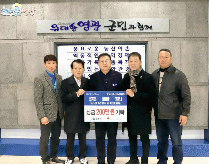 [¹Ìµð¾îÀü³² Á¦°¥´ëÁ¾ ±âÀÚ]Áö³ 11ÀÏ ¿µ±¤±º ÃкÒȸ¿¡¼´Â ¡®Èñ¸Á2024³ª´®Ä·ÆäÀΡ¯¿¡ ÀÌ¿ôµ½±â¼º±Ý 200¸¸ ¿øÀ» ±âŹÇÏ¿© ³ª´® ¹®È È®»ê¿¡ µ¿ÂüÇß´Ù. ¿µ±¤±º ÃкÒȸ´Â 43¸íÀÇ È¸¿øÀ¸·Î ±¸¼ºµÈ ÀÚ¿øºÀ»ç ´Üü·Î º¹Áö»ç°¢Áö´ë ¹× ´Ù¹®È ¡¦