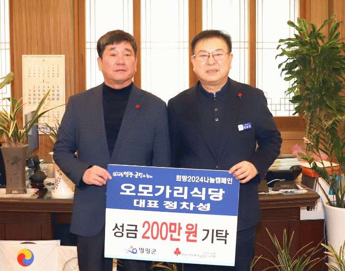 [¹Ìµð¾îÀü³² Á¦°¥´ëÁ¾ ±âÀÚ] Áö³ 11ÀÏ ¿À¸ñ°¡¸® ½Ä´ç(´ëÇ¥ Á¤Â÷¼º)¿¡¼´Â ¿µ±¤±º¿¡ ¡®Èñ¸Á2024³ª´®Ä·ÆäÀΡ¯ ¼º±Ý 200¸¸ ¿øÀ» ±âŹÇß´Ù. ÇÑÁ¤½Ä Àü¹®Á¡ ¿À¸ð°¡¸®½Ä´ç Á¤Â÷¼º ´ëÇ¥´Â ¡°¿ÃÇØµµ ¿À¸ð°¡¸®½Ä´çÀ» ¸¹ÀÌ ÀÌ¿ëÇØ Áֽбº¹Î¿¡°Ô¡¦