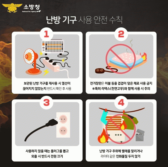 [¹Ìµð¾îÀü³² °í±Ô¼® ±âÀÚ]¸ñÆ÷¼Ò¹æ¼´Â °Ü¿ïöÀ» ¸Â¾Æ 3´ë Àü±â ³¹æ¿ëǰÀÇ »ç¿ë ¾ÈÀü ¼öÄ¢À» °Á¶Çϸç ÈÀç ¿¹¹æ¿¡ °¢º°ÇÑ ÁÖÀǸ¦ ´çºÎÇß´Ù. 3´ë Àü±â ³¹æ¿ëǰÀº °Ü¿ïö ½Ç³»È°µ¿ÀÇ ºóµµ°¡ Àæ¾ÆÁö¸é¼ ÁÖ·Î »ç¿ëµÇ´Â Àü±âÀåÆÇ, Àü±âÈ÷¡¦