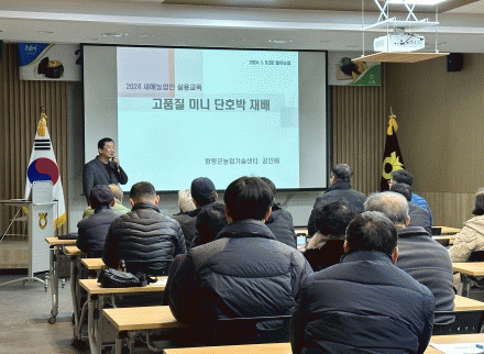 [¹Ìµð¾îÀü³² Á¦°¥´ëÁ¾ ±âÀÚ]10ÀÏ ÇÔÆò±º ³ó¾÷±â¼ú¼¾ÅÍ¿¡¼´Â ½º¸¶Æ®ÆÊ ±³À°Àå¿¡¼ Á÷¿øÀ» ´ë»óÀ¸·Î ¡®³ó¾÷ÀÇ ¹Ì·¡¿Í ³óÃÌÁöµµ»çÀÇ ¿ªÇÒ¡¯ À̶ó´Â ÁÖÁ¦·Î Åä·Ðȸ ½Ã°£À» °¡Á³´Ù. À̳¯ Åä·Ðȸ´Â ±âÈĺ¯È¿¡ µû¸¥ ÇÔÆò±º ÁÖ¿ä Àç¹èÀÛ¹°ÀÇ ÇÇ¡¦