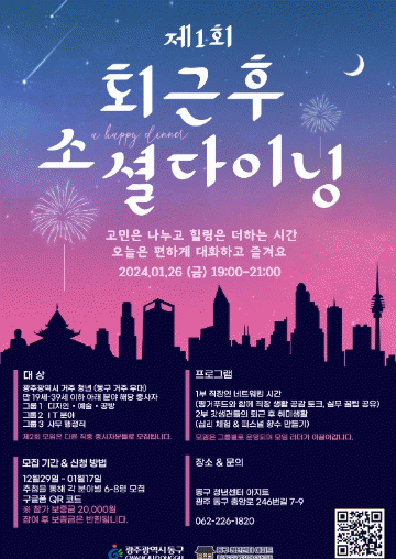 [¹Ìµð¾îÀü³² ±èÁ¤¿ì ±âÀÚ]±¤ÁÖ µ¿±¸´Â Áö³ÇØ 11¿ù °³°üÇÑ µ¿±¸ û³â¼¾ÅÍ(û³â ¾ÆÁöÆ® D.GIT)¿¡¼ ÃßÁøÇÏ´Â ¡®Á¦1ȸ Åð±Ù ÈÄ ¼Ò¼È´ÙÀ̴ס¯ ÇÁ·Î±×·¥ Âü¿© Èñ¸ÁÀÚ¸¦ ¿À´Â 17ÀϱîÁö ¸ðÁýÇÑ´Ù°í ¹àÇû´Ù. ¡®Åð±Ù ÈÄ ¼Ò¼È´ÙÀ̴ס¯Àº Á÷ÀåÀε顦