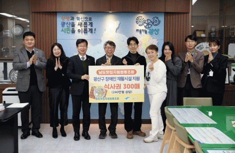 [¹Ìµð¾îÀü³² ±èÁ¤¿ì ±âÀÚ]³²µµ¸ÀÁýÁö¿øÇùµ¿Á¶ÇÕ°¡ Áö³ 9ÀÏ ±¤»ê±¸ Àå¾ÖÀÎÀ» À§ÇØ ÇÑ½ÄºßÆä ½Ä»ç±Ç 300¸Å¸¦ ÈÄ¿øÇß´Ù. ³²µµ¸ÀÁýÁö¿øÇùµ¿Á¶ÇÕÀº ±¤»ê±¸ Çб³±Þ½Ä ½ÄÀç·á¸¦ °ø±ÞÇÏ´Â ¾÷ü·Î, ¼öÀÍ »çȸÀû ȯ¿ø°ú Áö¿ª Àå¾ÖÀÎÀÇ »çȸ Ȱµ¿ ¡¦