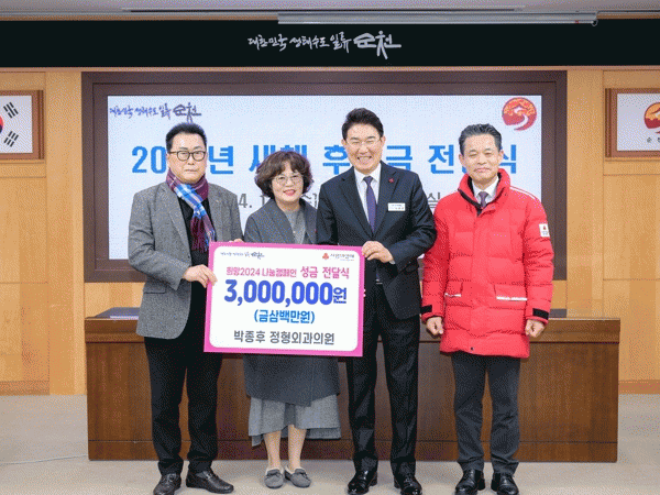 [¹Ìµð¾îÀü³² ÀÓ¼º¿Ï ±âÀÚ]¼øÃµ½Ã´Â Áö³ 3ÀÏ ¹ÚÁ¾ÈÄ Á¤Çü¿Ü°úÀÇ¿ø(¿øÀå ¹ÚÁ¾ÈÄ)¿¡¼ »õÇØ ÀÌ¿ôµ½±â ¼º±Ý 300¸¸¿øÀ» ¼øÃµ½Ã¿¡ ±âŹÇß´Ù°í ¹àÇû´Ù. À̳¯ ±âŹ½Ä¿¡ ¹ÚÁ¾ÈÄ ¿øÀåÀ» ´ë½ÅÇØ Âü¿©ÇÑ ¼Çý¼® »ç¸ð´ÔÀº¡°±×µ¿¾ÈÀº ¾ÏȯÀÚ µî ȯ¿ì ¡¦