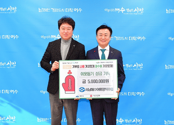 [¹Ìµð¾îÀü³² ÀüÇü¼º ±âÀÚ]¿©¼ö½Ã´Â ¿¬¸»ÀÎ Áö³ 12¿ù 29ÀÏ ¿©¼ö½ÃÁ¾ÇհǼ³ÇùÀÇȸ°¡ ¡®Èñ¸Á2024 ³ª´®Ä·ÆäÀΡ¯ ¼º±ÝÀ¸·Î 3¹é¸¸ ¿øÀ» ±âŹÇß´Ù°í ¹àÇû´Ù. À̳¯ ½ÃÀå½Ç¿¡¼ ¿¸° Àü´Þ½Ä¿¡´Â Á¤±â¸í ½ÃÀå°ú ¿©¼ö½ÃÁ¾ÇհǼ³ÇùÀÇȸ ±è¿µÅ ȸÀ塦