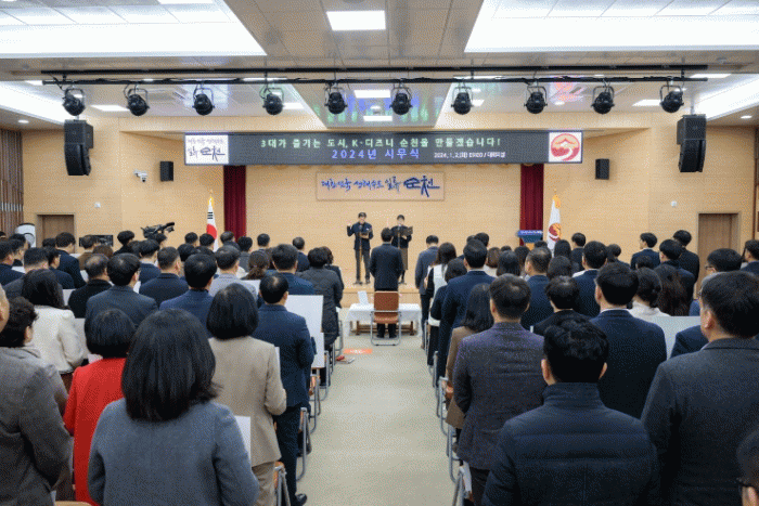 [¹Ìµð¾îÀü³² ÀÓ¼º¿Ï ±âÀÚ]¼øÃµ½Ã´Â 2ÀÏ 2024³â »õÇØ ½ÃÁ¤ ¾÷¹«¸¦ ½ÃÀÛÇÏ´Â ½Ã¹«½Ä¿¡¼ °£ºÎ°ø¹«¿ø µî Á÷¿ø 200¿© ¸íÀÌ Âü¼®ÇÑ °¡¿îµ¥ ¹ÝºÎÆÐ¡¤Ã»·Å½Çõ ´ÙÁü °áÀÇ´ëȸ¸¦ °¡Á³´Ù. À̹ø °áÀÇ´ëȸ´Â 2024³â¿¡µµ ±¹¹Î±ÇÀÍÀ§ û·Åµµ Æò°¡ »ó¡¦