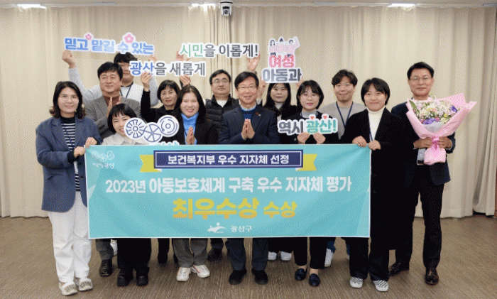 [¹Ìµð¾îÀü³² ±èÁ¤¿ì ±âÀÚ]±¤ÁÖ ±¤»ê±¸°¡ º¸°Çº¹ÁöºÎ ÁÖ°ü ¡®2023³â ¾Æµ¿º¸È£Ã¼°è ±¸Ãà ¿ì¼ö Áö¹æÀÚÄ¡´Üü Æò°¡¡¯¿¡¼ ÃÖ¿ì¼ö»óÀ» ¹Þ¾Ò´Ù. º¸°Çº¹ÁöºÎ´Â Àü±¹ 229°³ ½Ã¡¤±º¡¤±¸¸¦ ´ë»óÀ¸·Î ¾Æµ¿º¸È£ Á¶Á÷°ú ÀηÂ, »ç·Ê°áÁ¤À§¿øÈ¸ ¿î¿µ, ¾Æ¡¦