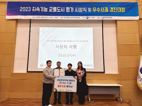 [¹Ìµð¾îÀü³² ÀüÇü¼º ±âÀÚ]¿©¼ö½Ã°¡ ¡®2023³â ´ëÁß±³Åë ½ÃÃ¥Æò°¡ Àü±¹ 1À§¡¯¿¡ ÀÌ¾î ¡®2023Áö¼Ó°¡´É ±³Åëµµ½Ã Æò°¡¡¯¿¡¼µµ ÃÖ¿ì¼ö»óÀ» ¼ö»óÇÏ´Â À¯·Ê¾ø´Â ¼º°ú¸¦ °Åµ×´Ù. 27ÀÏ ½Ã¿¡ µû¸£¸é ¿©¼ö½Ã´Â ±¹Åä±³ÅëºÎ¿¡¼ ÁÖ°üÇÏ´Â ¡®2023³âµµ¡¦