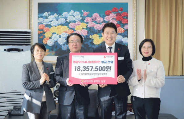 [¹Ìµð¾îÀü³² ÀÓ¼º¿Ï ±âÀÚ]¼øÃµ½Ã´Â 27ÀÏ KBS ¼øÃµ¹æ¼Û±¹¿¡¼ Èñ¸Á2024 ³ª´®Ä·ÆäÀÎ µ¿ÂüÀ» À§ÇØ ½Ãû °øÁ÷ÀÚ 1,419¸íÀÌ ¸ð±ÝÇÑ ¼º±Ý 18,357,500¿øÀ» Àü´ÞÇß´Ù. À̳¯ Àü´ÞµÈ ¼º±ÝÀº ³ë°ü±Ô ¼øÃµ½ÃÀåÀ» ºñ·ÔÇØ °øÁ÷ÀÚµéÀÌ ÀÚÀ²ÀûÀ¸·Î ±âºÎÇÑ¡¦