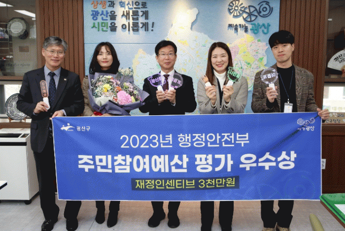 [¹Ìµð¾îÀü³² ±èÁ¤¿ì ±âÀÚ]±¤ÁÖ ±¤»ê±¸(±¸Ã»Àå ¹Úº´±Ô)°¡ ÇàÁ¤¾ÈÀüºÎ ÁÖ°ü ¡®ÁÖ¹ÎÂü¿©¿¹»êÁ¦ Æò°¡¡¯¿¡¼ Á¾ÇÕ»ó ºÎ¹® ¿ì¼ö ÀÚÄ¡´Üü·Î ¼±Á¤µÅ ÇàÁ¤¾ÈÀüºÎÀå°ü ǥâÀ» ¹Þ¾Ò´Ù. ±¤ÁÖ ÀÚÄ¡±¸ Áß À¯ÀÏÇÏ°Ô 2³â ¿¬¼Ó ¼ö»óÀÇ ¿µ±¤À» ¾ÈÀº ±¤»ê¡¦