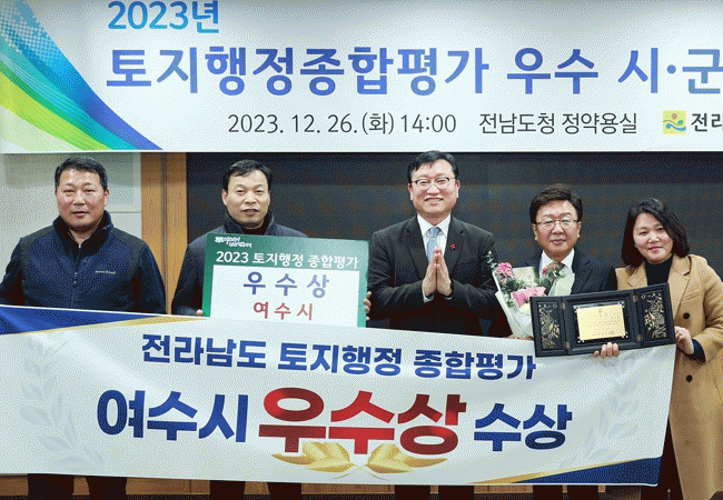 [¹Ìµð¾îÀü³² ÀüÇü¼º ±âÀÚ]¿©¼ö½Ã°¡ Áö³ 26ÀÏ Àü¶ó³²µµ ÁÖ°ü ÅäÁöÇàÁ¤ Á¾ÇÕÆò°¡¿¡¼ ¿ì¼ö»óÀ» ¼ö»óÇÏ¸ç º» Æò°¡¿¡¼ 10³â ¿¬¼Ó ¼ö»ó ±â°üÀ̶ó´Â ¿µ¿¹¸¦ ¾È¾Ò´Ù. 27ÀÏ ½Ã¿¡ µû¸£¸é Àü³²µµ´Â ÅäÁöÇàÁ¤ ¼ºñ½º Çâ»óÀ» À§ÇØ Áö³ 2014³âºÎÅÍ¡¦