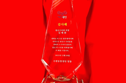 [¹Ìµð¾îÀü³² ±èÁ¤¿ì ±âÀÚ]±¤»ê±¸ÀÇȸ ±èÅÂ¿Ï ÀÇÀå(´õºÒ¾î¹ÎÁÖ´ç, ¼ö¿Ïµ¿¡¤Çϳ²µ¿¡¤ÀӰ)ÀÌ 26ÀÏ ¼ö¿Ïµ¿ ÅëÀå´ÜÀ¸·ÎºÎÅÍ Áö¿ª ¹ßÀü °ø·Î¸¦ ÀÎÁ¤¹Þ¾Æ °¨»çÆÐ¸¦ ¹Þ¾Ò´Ù. ±è ÀÇÀåÀº Áö³ 10¿ù ±¤»ê±¸ÀÇȸ Á¦283ȸ ÀÓ½Ãȸ¿¡¼ ÅëÀå ¸ðÁý ¡¦