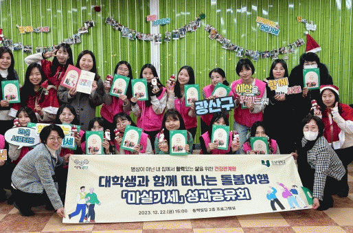 [¹Ìµð¾îÀü³² ±èÁ¤¿ì ±âÀÚ]±¤ÁÖ ±¤»ê±¸´Â Áö³ 22ÀÏ µ¿¹éºôµù 2Ãþ ±³À°½Ç¿¡¼ ´ëÇлý°ú ÇÔ²² ¶°³ª´Â µ¹º½¿©Çà ¡®¸¶½Ç°¡¼¼¡¯ »ç¾÷ ¼º°ú°øÀ¯È¸¸¦ °³ÃÖÇß´Ù°í ¹àÇû´Ù. ¡®¸¶½Ç°¡¼¼¡¯´Â Áö³ 5¿ù ±¤»ê±¸°¡ È£³²´ëÇб³¿Í ¾÷¹«Çù¾à(MOU)À» ü°áÇÏ¡¦