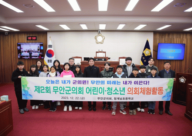 [¹Ìµð¾îÀü³² ±èÆÇ±¹ ±âÀÚ]¹«¾È±ºÀÇȸ´Â 22ÀÏ º»È¸ÀÇÀå¿¡¼ û°è³²ÃʵîÇб³ Çлý 13¸íÀ» ´ë»óÀ¸·Î ¡®Á¦2ȸ ¾î¸°ÀÌ¡¤Ã»¼Ò³â ÀÇȸüÇèȰµ¿¡¯À» ¿î¿µÇß´Ù°í ¹àÇû´Ù. Áö³ 11¿ù Á¦1ȸ ÀÇȸüÇèȰµ¿À» ¿î¿µÇØ Å« È£ÀÀÀ» ¾òÀº µ¥ ÀÌ¾î µÎ ¹øÂ°¡¦