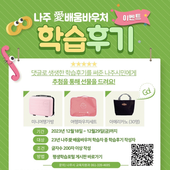[¹Ìµð¾îÀü³² Á¦°¥´ëÁ¾ ±âÀÚ]Àü¶ó³²µµ ³ªÁֽà ¿ÃÇØ ù ½ÃÇàÇÑ Æò»ýÇнÀ ¹Ù¿ìó »ç¾÷ÀÎ ¡®³ªÁÖäñ¹è¿ò¹Ù¿ìó¡¯ Âü¿©ÀÚ ¼³¹®Á¶»ç ¹× ÇнÀ Èıâ À̺¥Æ®¸¦ ¿À´Â 29ÀϱîÁö ¸ðÁýÇÑ´Ù°í 19ÀÏ ¹àÇû´Ù. ÇнÀ Èıâ Âü¿©ÀÚ¿¡°Ô´Â Ãß÷À» ÅëÇØ ¼ÒÁ¤ÀÇ¡¦