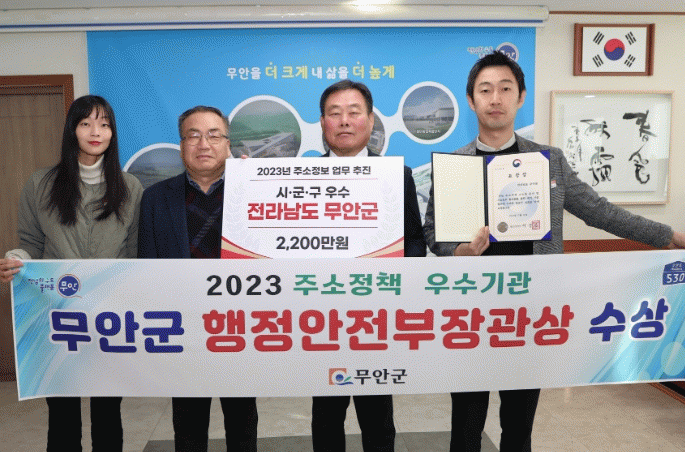 [¹Ìµð¾îÀü³² ±èÆÇ±¹ ±âÀÚ]Àü³² ¹«¾È±º(Àº ¡®2023³âµµ ÁÖ¼ÒÁ¤Ã¥ ¾÷¹«ÃßÁø ¿ì¼ö±â°ü¡¯À¸·Î ¼±Á¤µÇ¾î ÇàÁ¤¾ÈÀüºÎÀå°ü ǥâÀ» ¼ö»óÇϰí, ºÎ»óÀ¸·Î Ưº°±³ºÎ¼¼ 2,200¸¸ ¿øÀ» ¹Þ¾Ò´Ù°í ¹àÇû´Ù. À̹ø ¿ì¼ö±â°ü ¼±Á¤Àº ÇàÁ¤¾ÈÀüºÎ°¡ Àü±¹ ½Ã¡¤¡¦