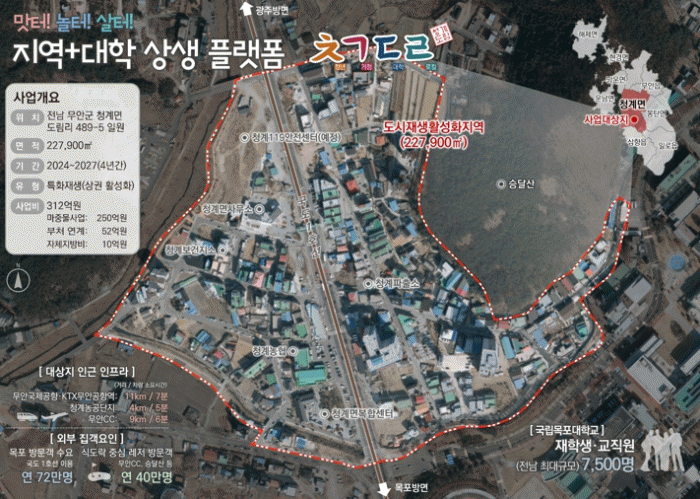 [¹Ìµð¾îÀü³² Á¦°¥´ëÁ¾ ±âÀÚ]Àü¶ó³²µµ´Â ±¹ÅäºÎÀÇ 2023³â µµ½ÃÀç»ý»ç¾÷ °ø¸ð¿¡ ¹«¾È±ºÀÌ ¼±Á¤µÅ ±¹ºñ 150¾ï ¿øÀ» È®º¸Çß´Ù°í ¹àÇû´Ù. ¼±Á¤µÈ »ç¾÷Àº µµ½ÃÀç»ý Áö¿ªÆ¯ÈÀç»ý ºÐ¾ß·Î, ¹«¾È û°è¸éÀÇ ¡®Áö¿ª+´ëÇÐ »ó»ý Ç÷§Æû ¤º¤¡¤§¤©(û°èµµ¡¦