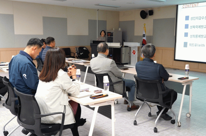 [¹Ìµð¾îÀü³² Á¦°¥´ëÁ¾ ±âÀÚ] ±¤ÁÖ±¤¿ª½ÃüÀ°È¸°¡(ȸÀå Àü°©¼ö) 14ÀÏ(¸ñ) üÀ°È¸°ü ÁßȸÀǽǿ¡¼ ºÎÀå±Þ ÀÌ»ó ÀÓ¿ø 8¸íÀ» ´ë»óÀ¸·Î ¡®°íÀ§Á÷ ¸ÂÃ㺰 Æø·Â¿¹¹æ±³À°¡¯ À» ½Ç½ÃÇß´Ù. À̹ø ±³À°Àº Æø·Â¿¹¹æ°ú ¼ºÈñ·Õ, ¼º¸Å¸Å, ¼ºÆø·Â, °¡Á¤Æø¡¦