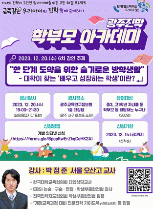 [¹Ìµð¾îÀü³² Á¦°¥´ëÁ¾ ±âÀÚ]±¤Áֽñ³À°Ã»ÀÌ ¿À´Â 20ÀÏ 19½Ã, ±¤ÁÖ±³À°¿¬±¸Á¤º¸¿ø 1Ãþ ´ë°´ç¿¡¼ ¡®ÇÑ ´Ü°è µµ¾àÀ» À§ÇÑ ½½±â·Î¿î ¹æÇлýȰ¡¯À» ÁÖÁ¦·Î Á¦6Â÷ÀÌÀÚ ¿ÃÇØ ¸¶Áö¸· ±¤ÁÖÁøÇÐ ÇÐºÎ¸ð ¾ÆÄ«µ¥¹Ì¸¦ °³ÃÖÇÑ´Ù. 14ÀÏ ½Ã±³À°Ã»¿¡ µû¡¦