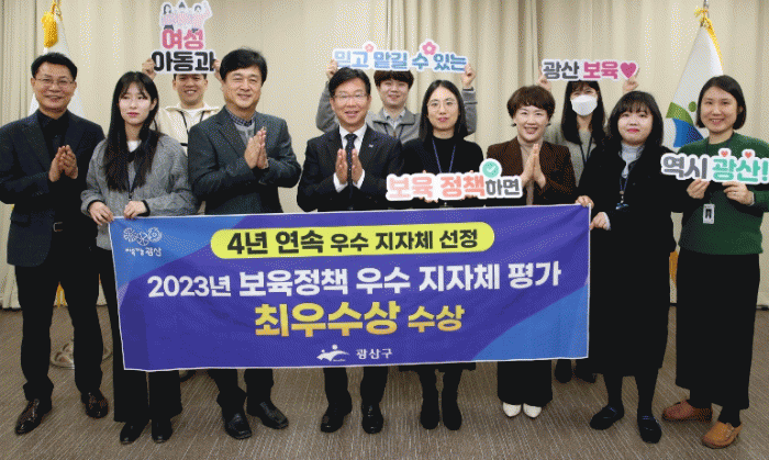 [¹Ìµð¾îÀü³² ±èÁ¤¿ì ±âÀÚ]±¤ÁÖ±¤¿ª½Ã ±¤»ê±¸°¡ º¸°Çº¹ÁöºÎ ÁÖ°ü ¡®2023³â º¸À° Á¤Ã¥ ¿ì¼ö Áö¹æÀÚÄ¡´Üü Æò°¡¡¯¿¡¼ ÃÖ¿ì¼ö»óÀ» ¹Þ¾Æ, 4³â ¿¬¼Ó ¿ì¼ö ÁöÀÚü ¼±Á¤À̶ó´Â ±ÝÀÚžÀ» ½×¾Ò´Ù. º¸°Çº¹ÁöºÎ´Â ¸Å³â Àü±¹ ÁöÀÚü¸¦ ´ë»óÀ¸·Î º¸À°¡¦