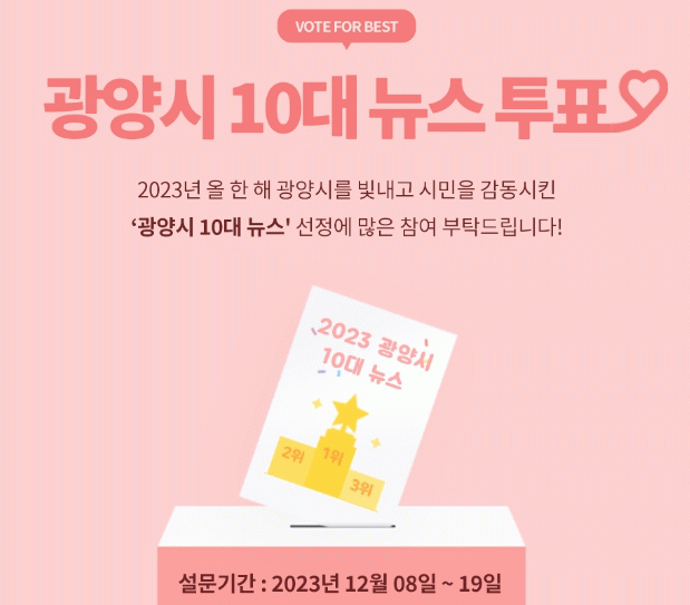 [¹Ìµð¾îÀü³² ÀÓ¼º¿Ï ±âÀÚ]±¤¾ç½Ã´Â ¿Ã ÇÑÇØ ±¤¾ç½Ã¸¦ ºû³»°í °¡Àå °ü½ÉÀ» ²ø¾ú´ø ¡®¿ÃÇØÀÇ 10´ë ´º½º¡¯¸¦ ¼±Á¤Çϱâ À§ÇØ ¿À´Â 19ÀϱîÁö ¿Â¶óÀÎ ¼³¹®Á¶»ç¸¦ ½Ç½ÃÇÑ´Ù. ¡®10´ë ´º½º¡¯ ¼³¹®Á¶»ç´Â ¿Ã ÇÑÇØ ±¤¾ç½Ã¿¡¼ ÃßÁøÇÑ ÁÖ¿ä ½ÃÃ¥°ú Çö¡¦