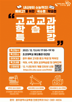[¹Ìµð¾îÀü³² ±èÁ¤¿ì ±âÀÚ]±¤Áֽñ³À°Ã»ÀÌ ¿À´Â 13ÀÏ 17½Ã Á¶¼±´ëÇб³ ÇØ¿À¸§°ü¿¡¼ ¿¹ºñ °í1(Çö Áß3) Çлý ¹× Çкθð ´ë»ó ¡®°í±³ ±¹¾î¡¤¼öÇС¤¿µ¾î ±³°úÇнÀ¹ý Ư°¡¯À» °³ÃÖÇÑ´Ù. 10ÀÏ ½Ã±³À°Ã»¿¡ µû¸£¸é À̹ø Ư°Àº ¼ö½Ã¿Í Á¤½ÃÀÇ ±Õ¡¦