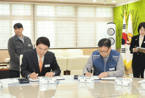 [¹Ìµð¾îÀü³² ÀÓ¼º¿Ï ±âÀÚ]¼øÃµ½Ã¿Í Àü±¹°ø¹«¿ø³ëµ¿Á¶ÇÕ ¼øÃµ½ÃÁöºÎ´Â 12¿ù 8ÀÏ ¼øÃµ½Ãû ½ÃÀå½Ç¿¡¼ ´ÜüÇù¾à Á¶ÀνÄÀ» °®°í ¡®2023³â °ø¹«¿ø ´ÜüÇù¾à¡¯À» ü°áÇß´Ù. ¿ÃÇØ 3¿ù ¼øÃµ½ÃÁöºÎÀÇ ±³¼· ¿ä±¸·Î ½ÃÀÛµÈ ´ÜüÇù¾àÀº Áö³ 4¿ù »ó¡¦