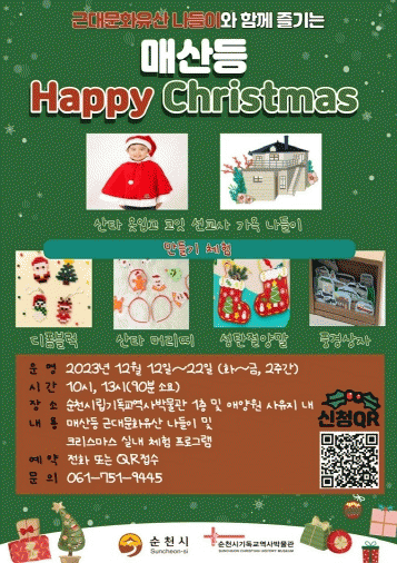 [¹Ìµð¾îÀü³² ÀÓ¼º¿Ï ±âÀÚ]¼øÃµ½Ã´Â ¿À´Â 12¿ù 12ÀϺÎÅÍ 22ÀϱîÁö 11Àϰ£ ¼øÃµ½Ã¸³±âµ¶±³¿ª»ç¹Ú¹°°ü°ú Àα٠ÄÚÀÕ ¼±±³»ç °¡¿Á µî¿¡¼ ¼ºÅºÀý ¸ÂÀÌ Æ¯º° üÇè ÇÁ·Î±×·¥À» ¿î¿µÇÑ´Ù. À̹ø ÇÁ·Î±×·¥Àº ¡®¸Å»êµî Happy Christmas¡¯¸¦ ÁÖÁ¦·Î,¡¦