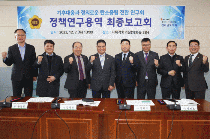 [¹Ìµð¾îÀü³² Á¦°¥´ëÁ¾ ±âÀÚ]Àü³²µµÀÇȸ ÀÇ¿ø ¿¬±¸´ÜüÀÎ ¡®±âÈÄ´ëÀÀ°ú Á¤ÀǷοî ź¼ÒÁ߸³ Àüȯ ¿¬±¸È¸¡¯¿¡¼´Â Áö³ 12¿ù 7ÀÏ Àü³²µµÀÇȸ ´Ù¸ñÀû ȸÀǽǿ¡¼ ¡®Åº¼ÒÁ߸³ Àüȯ¿¡ µû¸¥ ÀÏÀÚ¸® °¨¼Ò ´ëÀÀ ¹æ¾È ¼ö¸³À» À§ÇÑ Á¤Ã¥ ¿¬±¸¡¯¿¡ ´ë¡¦