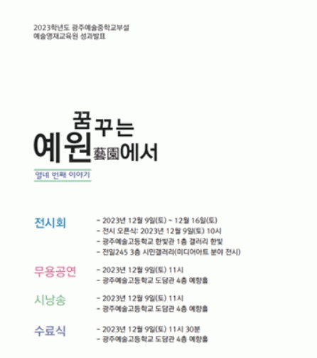 [¹Ìµð¾îÀü³² Á¦°¥´ëÁ¾ ±âÀÚ]±¤ÁÖ¿¹¼úÁßÇб³ºÎ¼³¿¹¼ú¿µÀç±³À°¿øÀÌ 9ÀÏ ¿¹¼úÁß¡¤°íµîÇб³ µµ´ã°ü 4Ãþ ¿¹ÇâȦ°ú °¶·¯¸® ÇѺû¿¡¼ ÇлýµéÀÇ ÇÑ ÇØ âÀÛȰµ¿À» ´ãÀº ¼º°ú¹ßǥȸ¸¦ °³ÃÖÇÑ´Ù. 6ÀÏ ¿¹¼ú¿µÀç±³À°¿ø¿¡ µû¸£¸é À̹ø Çà»ç´Â ¼ö·á½Ä¡¦