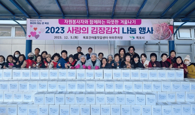 [¹Ìµð¾îÀü³² °í±Ô¼® ±âÀÚ]¸ñÆ÷½Ã´Â Áö³ 5ÀÏ ¸ñÆ÷°Ç¾î¹°Á£°¥¼¾ÅÍ¿¡¼ ÀÚ¿øºÀ»çÀÚ 70¿©¸íÀÌ Âü°¡ÇÑ °¡¿îµ¥ ¡®2023 »ç¶û³ª´® ±èÀå±èÄ¡ ³ª´©±â¡¯ Çà»ç¸¦ ÃßÁøÇß´Ù. À̳¯ Çà»ç´Â ¿Ã ÇÑÇØ ¾ç´ëüÀüÀ» Æ÷ÇÔÇÑ ´Ù¾çÇÑ Çà»ç¿¡¼ ¿Á¤°ú Çå½ÅÀ¸·Î¡¦