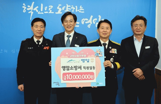 [¹Ìµð¾îÀü³² °í±Ô¼® ±âÀÚ]¿µ¾Ï¼Ò¹æ¼ Á÷¿øµéÀÌ 1ÀÏ ½Ê½ÃÀϹÝÀ¸·Î ¸ðÀº °íÇâ»ç¶û±âºÎ±Ý 1,000¸¸ ¿øÀ» ¿µ¾Ï±º¿¡ Àü´ÞÇß´Ù. ±èÀç½Â ¿µ¾Ï¼Ò¹æ¼ÀåÀº ¡°Áö¿ª»çȸ ¹ßÀüÀ» À§ÇÑ °íÇâ»ç¶û±âºÎÁ¦¿¡ ¿µ¾Ï¼Ò¹æ¼ Á÷¿øµé°ú ÇÔ²² µ¿ÂüÇØ ¶æ±í´Ù. ±âºÎ¡¦