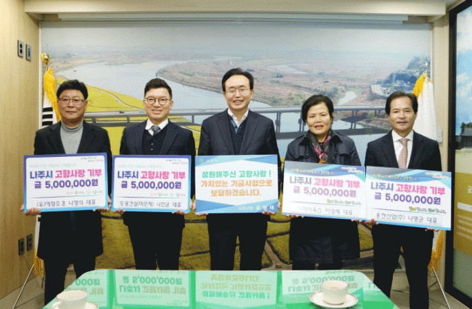 [¹Ìµð¾îÀü³² Á¦°¥´ëÁ¾ ±âÀÚ]Àü³² ³ªÁֽô ¹Ý³²¸é Çâ¿ìÀÎ ¿ëõ»ê¾÷(ÁÖ) ³ª¸í±Õ ´ëÇ¥, Å䱤°Ç¼³(¹Ì¸£Ã¤) ³ª¾È±Õ ´ëÇ¥, (À¯)¿¹ÇâÁ¶°æ ³ª¿µ½Ä ´ëÇ¥, ¢ßÇÏÀÌ¿Á½º ÀÌ¿µ·Ê ´ëÇ¥°¡ °íÇâ»ç¶û±âºÎÁ¦ ÃÖ°í Çѵµ ±Ý¾×ÀÎ 500¸¸ ¿øÀ» °¢°¢ ±âŹÇß´Ù°í ¡¦