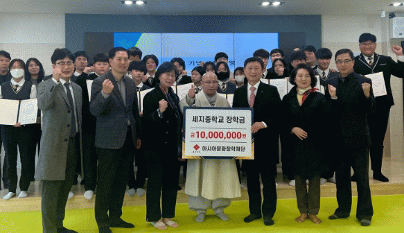 [¹Ìµð¾îÀü³² Á¦°¥´ëÁ¾ ±âÀÚ](Àç)¾Æ½Ã¾Æ¹®ÈÀåÇÐÀç´ÜÀÌ ÃÖ±Ù ³ªÁֽà ¼¼ÁöÁßÇб³ ÀçÇлý 20¸í¿¡°Ô 50¸¸¿ø¾¿ ÃÑ 1000¸¸¿øÀÇ ÀåÇбÝÀ» Àü´ÞÇß´Ù. 30ÀÏ Àç´Ü°ú ¼¼ÁöÁß¿¡ µû¸£¸é À̹ø ÀåÇÐ±Ý Àü´Þ½Ä¿¡´Â ¼¼ÁöÁß Àü¹ÌÀÚ ±³Àå°ú ±³Á÷¿ø, ÀçÇлý¡¦