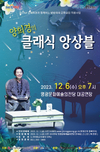 [¹Ìµð¾îÀü³² Á¦°¥´ëÁ¾ ±âÀÚ]¿µ±¤±ºÀº ¿À´Â 12¿ù 6ÀÏ ¿ÀÈÄ 7½Ã ¿µ±¤¹®È¿¹¼úÀÇÀü´ç ´ë°ø¿¬Àå¿¡¼ ¡®¾çÈñ°æÀÇ ´ÞÄÞÇÑ Å¬·¡½Ä¡¯À» °ø¿¬ÇÑ´Ù. ´ëÁߵ鿡°Ô ¸¹Àº »ç¶ûÀ» ¹Þ¾Æ¿Â ¹è¿ì ¾çÈñ°æÀÌ ÀÜÀÜÇÏ°í ³ª±ßÇÑ ¸Å·Â ³ÑÄ¡´Â ¸ñ¼Ò¸®·Î ÁøÇàÀ» ¸Ã¡¦