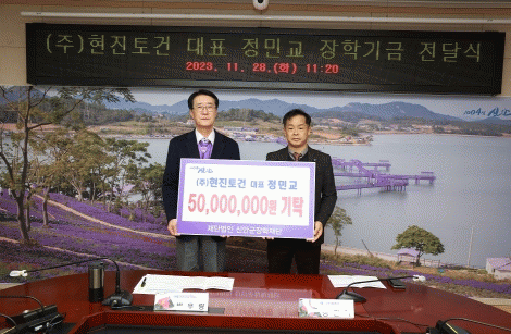 [¹Ìµð¾îÀü³² °í±Ô¼® ±âÀÚ](ÁÖ)ÇöÁøÅä°Ç Á¤¹Î±³ ´ëÇ¥´Â Áö³ 11¿ù 28ÀÏ ½Å¾È±ºÃ»À» ¹æ¹®ÇÏ¿© °æÁ¦ÀûÀ¸·Î Èûµç ÇлýµéÀ» À§ÇØ ½á ´Þ¶ó¸ç ½Å¾È±ºÀåÇÐÀç´Ü¿¡ 5õ¸¸ ¿ø ±âŹÀ» ¾àÁ¤Çß´Ù. ¢ßÇöÁøÅä°ÇÀº °ÇÃà, Åä¸ñ, Á¶°æ µîÀ» ½ÃÇàÇÏ´Â °Ç¼³¾÷¡¦