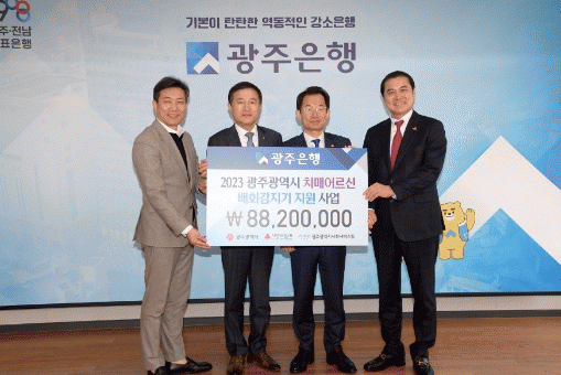 [¹Ìµð¾îÀü³² Á¦°¥´ëÁ¾ ±âÀÚ]¢ß±¤ÁÖÀºÇàÀÌ Ä¡¸Å¾î¸£½Å ¹èȸ°¨Áö±â Áö¿øÀ» À§ÇØ ±âºÎ±Ý 8000¸¸¿øÀ» ±¤Áֽÿ¡ Àü´ÞÇß´Ù. ±¤ÁÖ±¤¿ª½Ã´Â 29ÀÏ ±¤ÁÖÀºÇà º»Á¡¿¡¼ ¹®¿µÈÆ ÇàÁ¤ºÎ½ÃÀå, µîÀÌ Âü¼®ÇÑ °¡¿îµ¥ ¢ß±¤ÁÖÀºÇà, (Àç)±¤ÁÖ»çȸ¼ºñ½º¿ø, ±¤¡¦