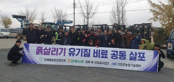 [¹Ìµð¾îÀü³² °í±Ô¼® ±âÀÚ]½Å¾È±º ¾ÐÇØÀ¾³ó¾÷°æ¿µÀÎȸ´Â ³óÁö Åä¾çÀ» »ì¸®±â À§ÇÏ¿© ¾ÐÇØÁö¿ª 36°³ Àü ¸¶À» ´ë»óÀ¸·Î Åä¾ç°³·®Á¦ÀÎ ±Ô»êÁúºñ·á 1,340ÅæÀ» °øµ¿ »ìÆ÷Çß´Ù°í ¹àÇû´Ù. ¾ÐÇØÀ¾³ó¾÷°æ¿µÀÎȸ 20¿© ¸íÀº Áö³ 24ÀϺÎÅÍ 27ÀϱîÁö¡¦