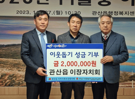 [¹Ìµð¾îÀü³² Á¦°¥´ëÁ¾ ±âÀÚ]±è¿¬½Ä Àç°æ ÀåÈﱺ Çâ¿ìȸÀåÀº 27ÀÏ ¾È¾ç¸é ÀÌÀåÀÚġȸ¿Í ¾È¾ç¸é Áö¿ª»çȸº¸ÀåÇùÀÇü¿¡¼ ÁÖÃÖÇÏ´Â ¡®2023³â °Ü¿ïö ¸ÂÀÌ Àú¼Òµæ Ãë¾à°èÃþÀ» À§ÇÑ »ç¶ûÀÇ ±èÀ峪´®¡¯Çà»ç¸¦ À§ÇÑ ÀÌ¿ôµ½±â ¼º±Ý 200¸¸¿øÀ» Àü´Þ¡¦