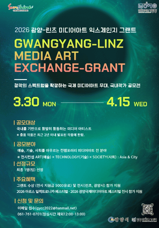 [¹Ìµð¾îÀü³² ÀÓ¼º¿Ï ±âÀÚ] ±¤¾ç¹®Èµµ½Ã¼¾ÅÍ´Â ¿À½ºÆ®¸®¾Æ ¸°Ã÷¿ÍÀÇ ¿¹¼ú ±³·ù¸¦ È®´ëÇÏ°í ±¹³» ¹Ìµð¾î¾ÆÆ®ÀÇ ±¹Á¦ °æÀï·ÂÀ» ³ôÀ̱â À§ÇØ '±¤¾ç-¸°Ã÷ ¹Ìµð¾î¾ÆÆ® ÀͽºÃ¼ÀÎÁö ±×·£Æ®(Exchange-Grant)'¿¡ Âü¿©ÇÒ ±¹³» ÀÛ°¡¸¦ °ø°³ ¸ðÁýÇÑ´Ù¡¦
