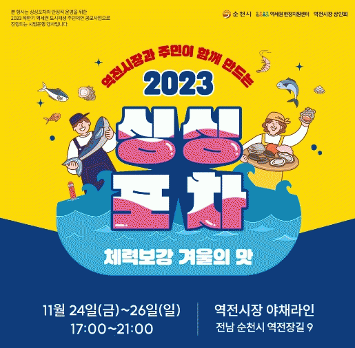 [¹Ìµð¾îÀü³² ÀÓ¼º¿Ï ±âÀÚ]¼øÃµ½Ã´Â ¿ª¼¼±Ç µµ½ÃÀç»ý Áֹΰø¸ð»ç¾÷ÀÇ ÀÏȯÀ¸·Î ¿À´Â 24ÀϺÎÅÍ 26ÀϱîÁö 3ÀÏ µ¿¾È ¼ö»ê¹° ¸Ô°Å¸® ÃàÁ¦ÀÎ ¡®2023 ½Ì½ÌÆ÷Â÷ : °Ü¿ïÀÇ ¸À¡¯ Çà»ç¸¦ °³ÃÖÇÑ´Ù. ¡®½Ì½ÌÆ÷Â÷ : °Ü¿ïÀÇ ¸À¡¯Àº ¿ÃÇØ Áß ³× ¹øÂ° ¿¡¦