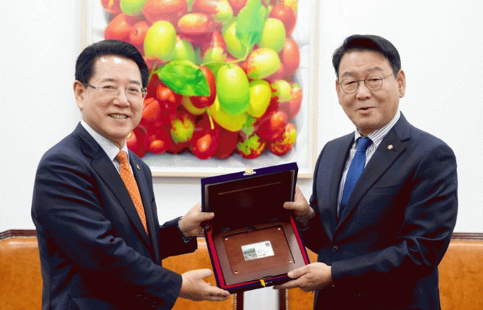 [¹Ìµð¾îÀü³² Á¦°¥´ëÁ¾ ±âÀÚ]±è¿µ·Ï Àü¶ó³²µµÁö»ç°¡ 22ÀÏ ±¹È¸¸¦ ¹æ¹®ÇØ ±è±³Èï(´õºÒ¾î¹ÎÁִ硤ÀÎõ ¼±¸°©) ±¹È¸ ÇàÁ¤¾ÈÀüÀ§¿øÈ¸ À§¿øÀå¿¡°Ô ¡®Àü¶ó³²µµ ¸í¿¹µµ¹ÎÆÐ¡¯¸¦ ¼ö¿©Çß´Ù. ±è±³Èï À§¿øÀåÀº Àü³²ÀÇ Çö¾È ÇØ°á°ú Áö¹æ¼Ò¸ê ±Øº¹À» ¡¦