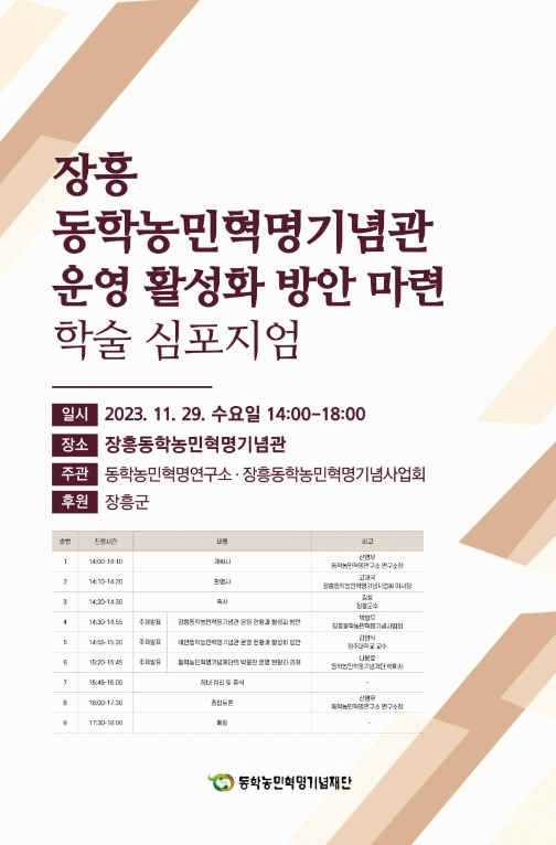 [¹Ìµð¾îÀü³² Á¦°¥´ëÁ¾ ±âÀÚ]µ¿Çгó¹ÎÇõ¸í±â³äÀç´Ü µ¿Çгó¹ÎÇõ¸í¿¬±¸¼Ò¿Í ÀåÈﵿÇгó¹ÎÇõ¸í±â³ä»ç¾÷ȸ´Â ÀåÈﵿÇгó¹ÎÇõ¸í±â³ä°üÀÇ È°¼ºÈ¸¦ ÁÖÁ¦·Î Çмú½ÉÆ÷Áö¾öÀ» °³ÃÖÇÑ´Ù. 1894³â µ¿Çгó¹ÎÇõ¸í °úÁ¤¿¡¼ ÀåÈï ¼®´ëµéÀº Ưº°ÇÑ À§Ä¡¸¦¡¦