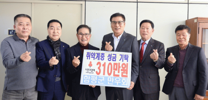 [¹Ìµð¾îÀü³² Á¦°¥´ëÁ¾ ±âÀÚ]22ÀÏ Àü³² ÇÔÆò±ºÀº ¡°ÇÔÆò±º ¸¸¿ìȸ(ȸÀå ÃÖ¼±µ¿)°¡ Áö³ 21ÀÏ Àú¼Òµæ Ãë¾à°èÃþÀ» À§ÇØ Çö±Ý 310¸¸¿øÀ» ±âŹÇß´Ù¡±°í ¹àÇû´Ù. ¸¸¿ìȸ´Â ÇÔÆò±º °ü³»¿¡¼ ¹Î¹°Àå¾î ¾ç½ÄÀå ¿î¿µÀÚ(ÃÑ 23¸í)ÀÇ ¸ðÀÓÀ¸·Î Æò¼Ò ¡¦