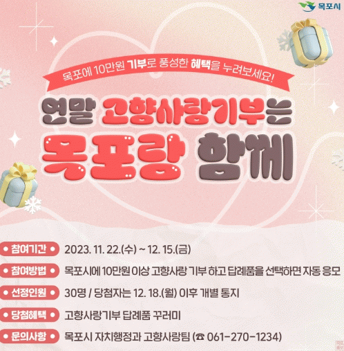 [¹Ìµð¾îÀü³² °í±Ô¼® ±âÀÚ]¸ñÆ÷½Ã°¡ ¿¬¸»À» ¸Â¾Æ °íÇâ»ç¶û±âºÎÁ¦ Âü¿©ÀÚ È«º¸ Çà»ç¸¦ ÁøÇàÇÑ´Ù. ¡°¿¬¸» °íÇâ»ç¶û±âºÎ´Â ¸ñÆ÷¶û¡±À̶õ ÁÖÁ¦·Î ÁøÇàµÇ´Â À̹ø Çà»ç´Â ¸ñÆ÷¸¦ ¼±ÅÃÇØ ÁØ ±âºÎÀڵ鿡°Ô ´õ¿í ÀÇ¹Ì ÀÖ´Â ¿¬¸»À» ¼±¹°Çϱâ À§ÇØ 2¡¦