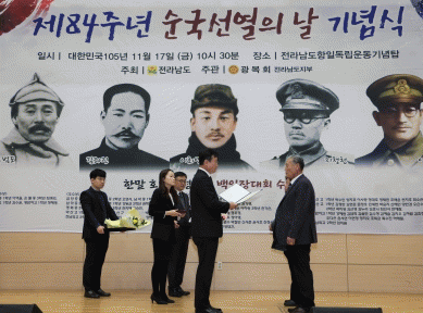 [¹Ìµð¾îÀü³² Á¦°¥´ëÁ¾ ±âÀÚ]Àü¶ó³²µµ¿Í ±¤º¹È¸ Àü³²µµÁöºÎ´Â 17ÀÏ µµÃ»¿¡¼ Á¦84Áֳ⠼ø±¹¼±¿ÀÇ ³¯ ±â³ä½ÄÀ» ¿¾î ¼ø±¹¼±¿°ú È£±¹¿µ·ÉÀÇ Èñ»ýÁ¤½ÅÀ» ±â·È´Ù. ±â³ä½Ä¿¡´Â ¸íâȯ Àü³²µµ ÇàÁ¤ºÎÁö»ç, Àü°æ¼± Àü³²µµÀÇȸ ºÎÀÇÀå, ÀÌÇâ¼÷ ¡¦