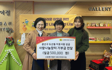 [¹Ìµð¾îÀü³² ±èÁ¤¿ì ±âÀÚ]±¤ÁÖ ±¤»ê±¸ µµ»êµ¿ ¼ÒÀç ±¤»ê¾î¸°ÀÌÁýÀÌ Áö³ 16ÀÏ Áö¿ª µ¹º½ ÀÌ¿ôÀ» À§ÇØ 50¸¸ ¿øÀ» ÈÄ¿øÇß´Ù. ±¤»ê¾î¸°ÀÌÁý ¿ø³» ¾Æµ¿, Çкθ𰡠Âü¿©ÇÑ ¹ÙÀÚȸ ¼öÀͱÝÀ¸·Î ¸¶·ÃÇÑ ÈÄ¿ø±ÝÀº µ¿Àý±â Àç³ Ãë¾à°èÃþ ³¹æ¿ëǰ Áö¡¦